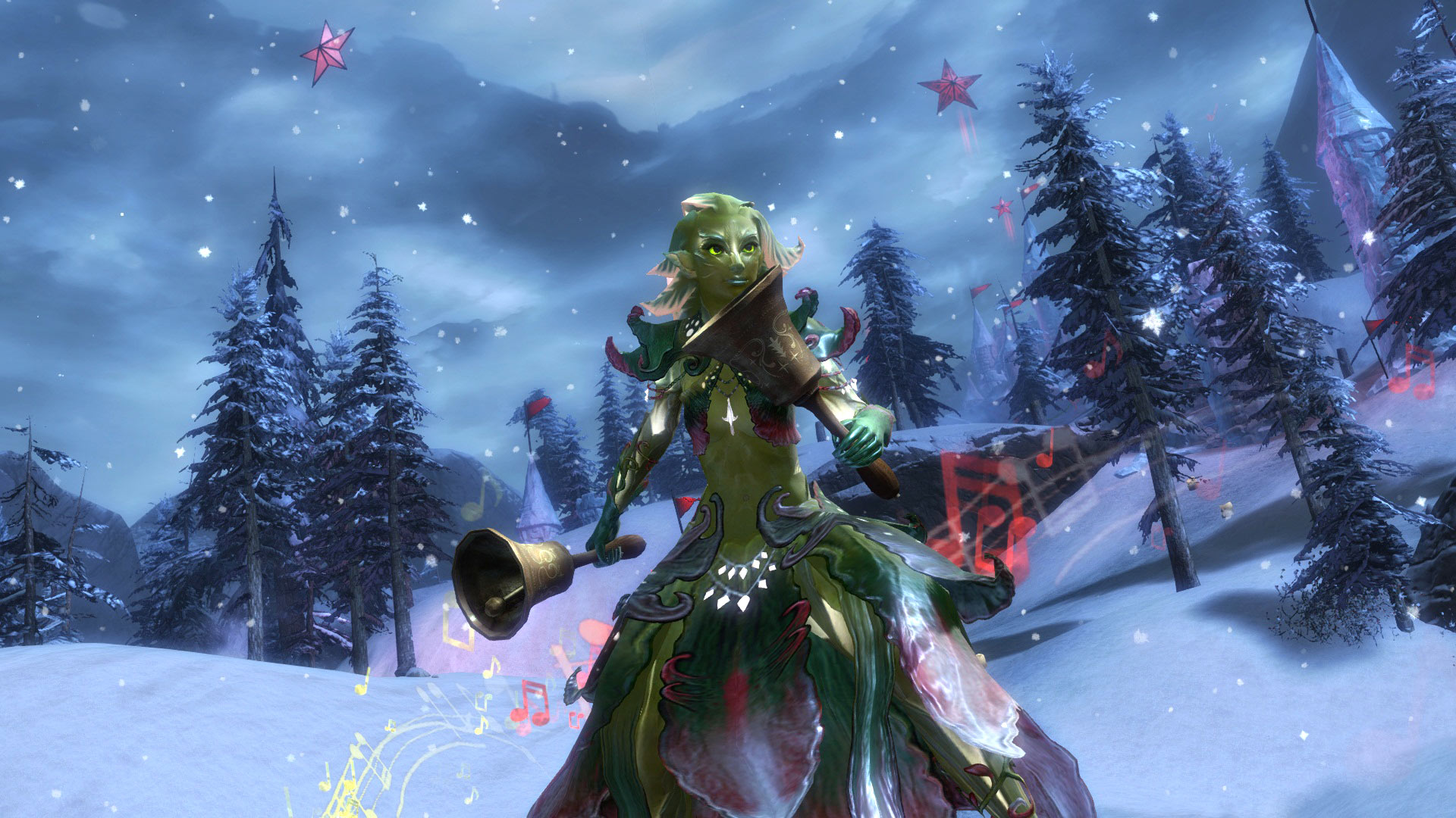 Make sweet music ring through the air with Tyria’s favorite musical challenge, the Bell Choir! Group up with other players to make sweet harmonies and ring in the season.