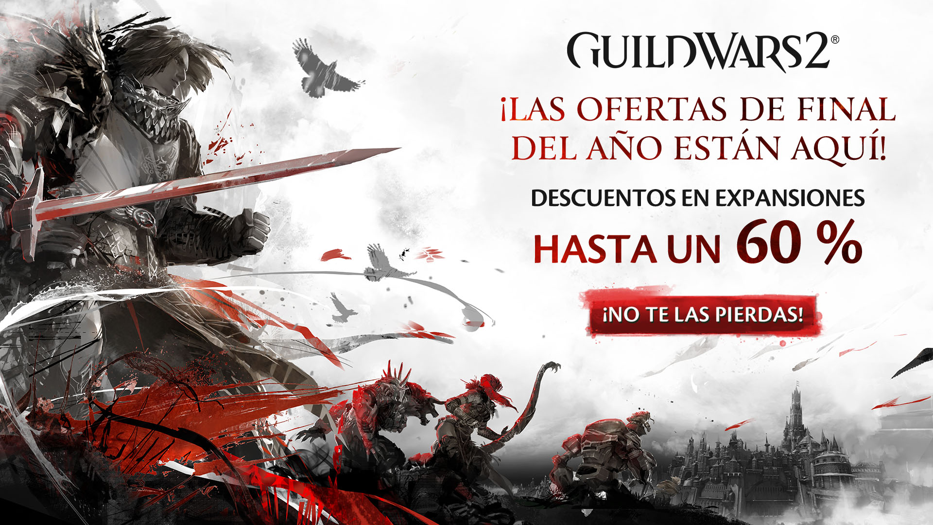 - Expansiones 1 y 2, Guild Wars 2: Heart of Thorns® y Guild Wars 2: Path of Fire®, descuento del 60 %