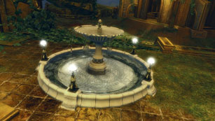 Des décorations basiques peuvent être achetées auprès d’un vendeur dans votre hall de guilde, mais des matériaux catalyseurs trouvés dans le monde ouvert vous permettront de les raffiner. Vous pouvez par exemple acheter un bassin rocheux auprès du vendeur de décorations, mais il est un peu simpliste. Cependant, en haut du puzzle de saut du Jardin caché, au Mont Maelström, se trouve un trio d’élémentaires d’air qui peut vous confier une essence d’illumination. Grâce à elle, vous obtenez une recette servant à raffiner votre bassin rocheux en fontaine illuminée, un bassin carrelé plus imposant orné de lanternes.
